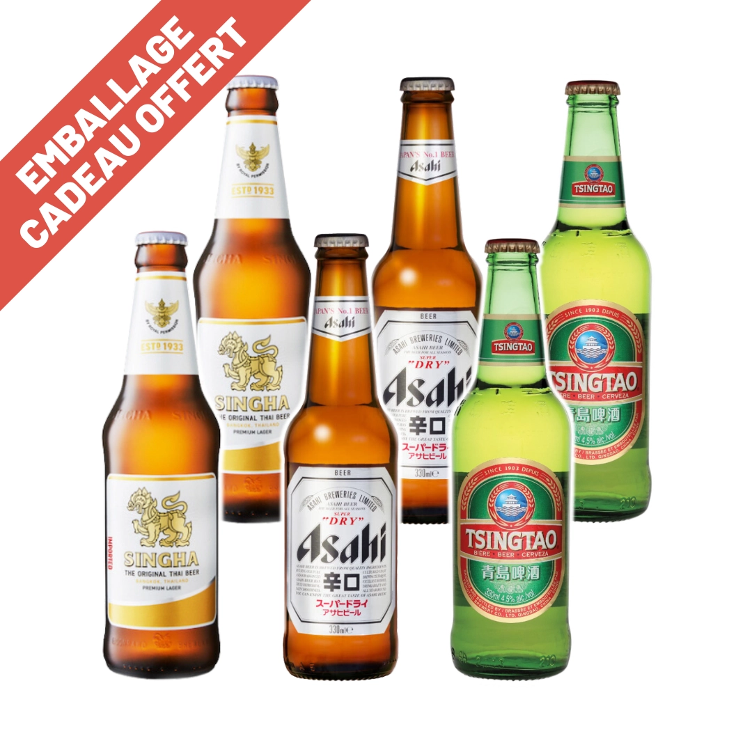 Un voyage gustatif unique au cœur de l’Asie, spécialement conçu pour les amateurs de bières internationales et les curieux de nouvelles saveurs. Ce pack de bières asiatiques réunit réunit 3 bières emblématiques de Chine (Tsingtao) de Thaïlande (Singha) et du Japon (Asahi).
