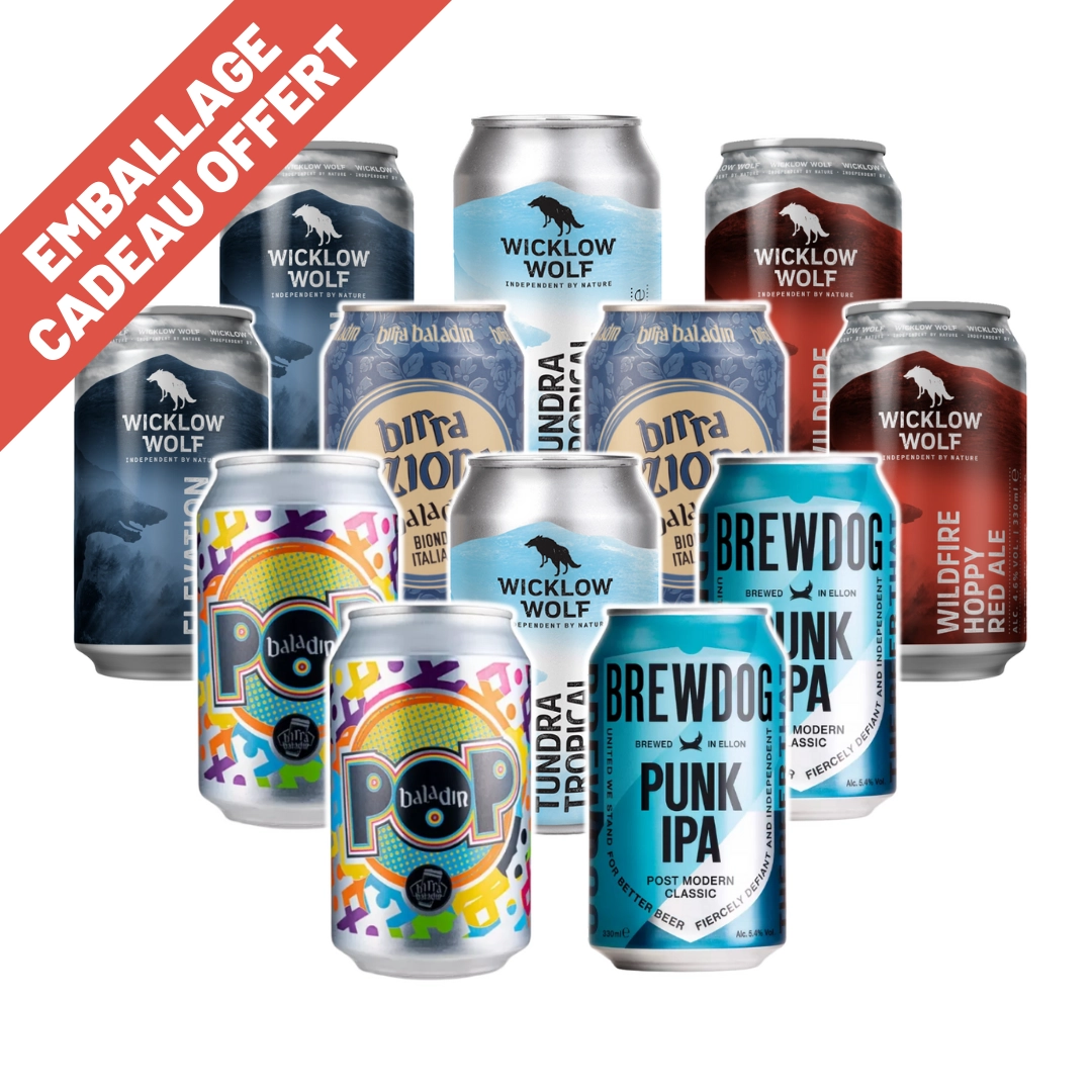 Un assortiment de 2x6 bières en canettes, spécialement pensé pour être bu en duo : chacun sa bière, sans avoir à se battre pour la dernière gorgée 😌